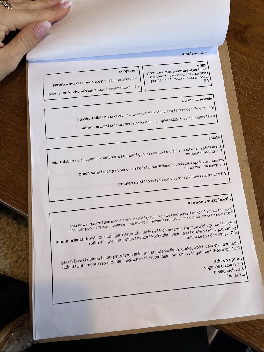 mamomi cafe weinbar studio Menu